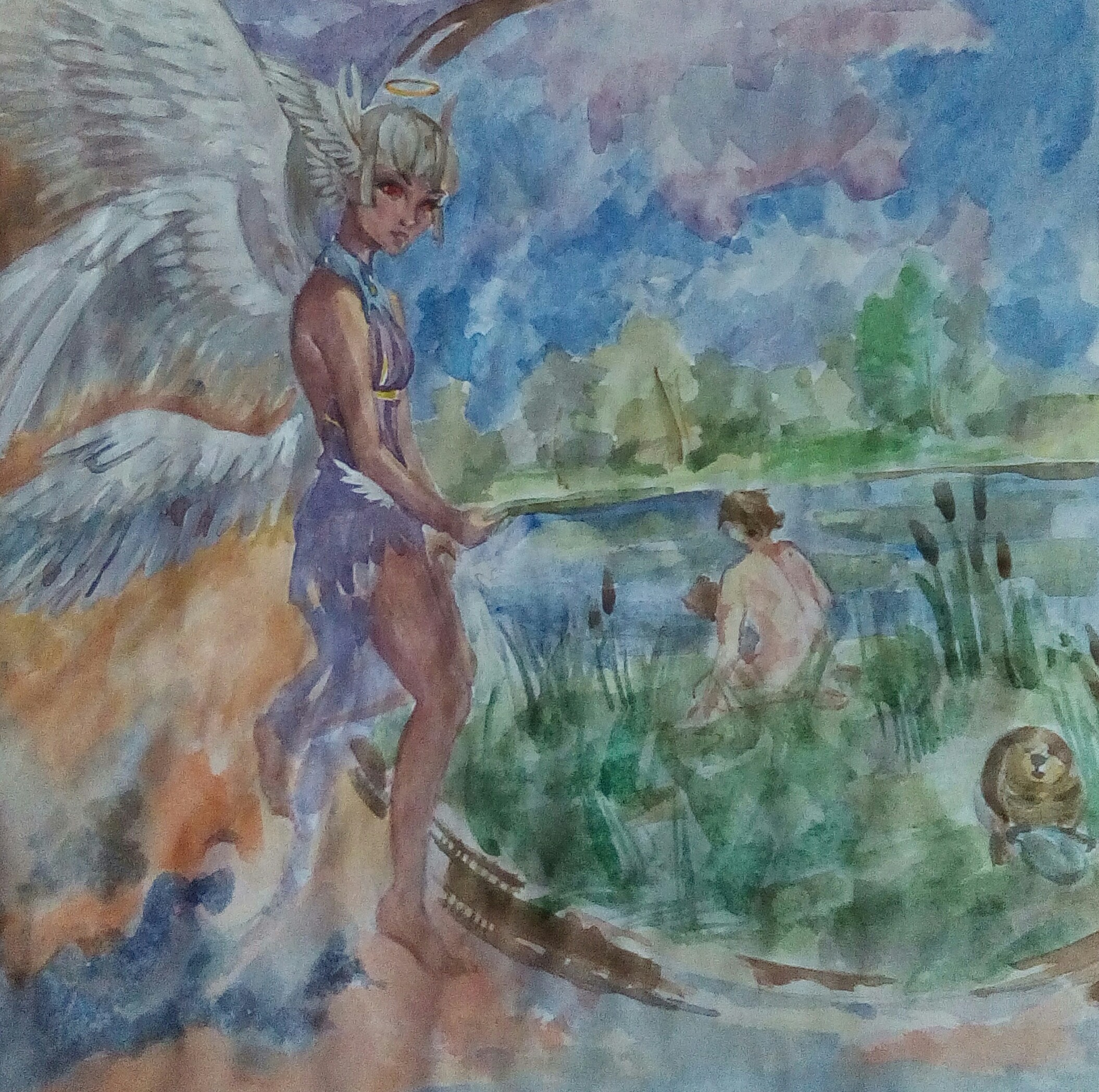 Более того по тексту, Бес - мужчина. Это там явно прописано.Большое спасибо за участие, к сожалению рисунок не удовлетворяет условиям конкурса, так как на картине, висящей в галерее в таверне, не может быть Беса, ибо не может быть на скриншоте того, кто этот скриншот делал.