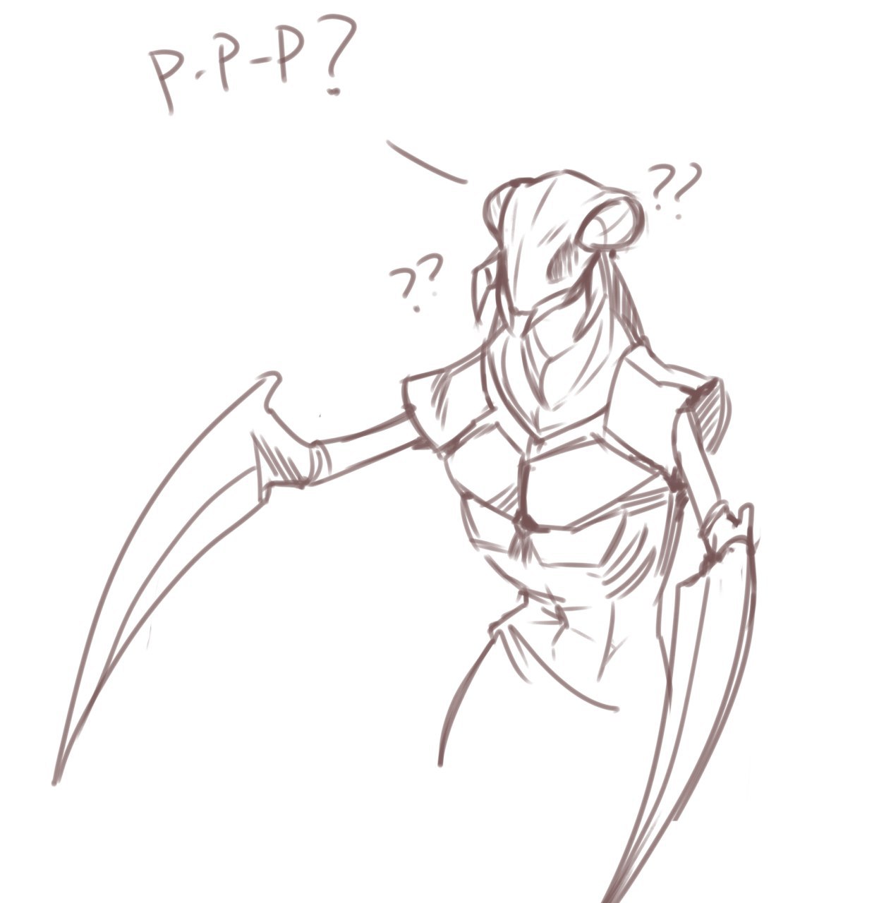 Руки идеально подходили к жвалам. Шли в комплекте {пропущено} эстетичности. От плеч до локтей – тонкие и круглые. От локтей и дальше – просто плоские хреновины вроде мечей. С одной стороны море зубцов, на конце длинный шип, с внутренней стороны лезвия.